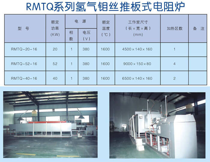 隧道窑推板式电阻炉主要适用于三基色荧光粉、陶瓷的金属化等在还原气氛下的烧结。加热元件有高温钼和硅钼棒二种,详细见规格及参数。设备由炉体、装进装置、气路、电控柜等组成。特点:硅钼棒或钼丝板两侧加热,炉膛顶砖采用拼装结构,保证窑炉的使用寿命。